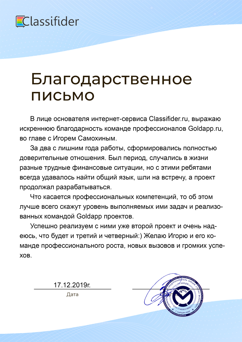 Веб-агентство GoldApp работает на рынке IT разработки с 2011 года. Я, как Founder компании и в прошлом веб-разработчик, привлекаю в команду только людей с реальным опытом в IT и склонностью к реализации собственных идей и стартапов. Являюсь CTO и адвайзером в нескольких блокчейн стартапах.